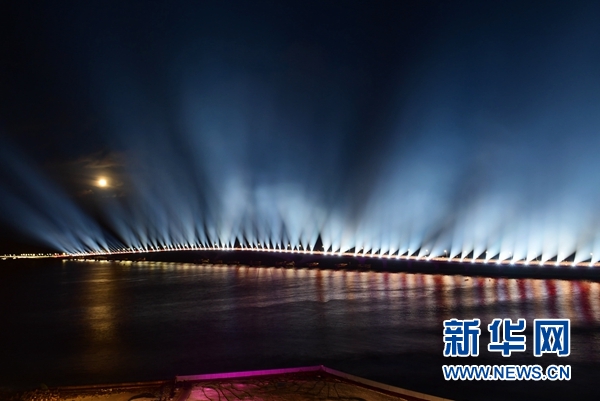 这是8月30日拍摄的点亮灯光的中马友谊大桥。 新华社发(杜才良摄)