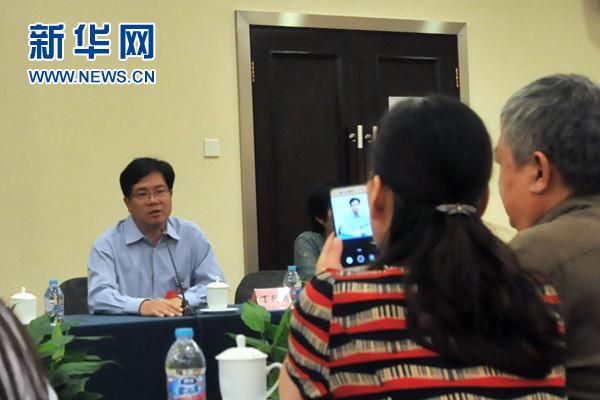 贝达药业股份有限公司董事长兼首席执行官丁列明(左一)。新华网发 李雪梅摄