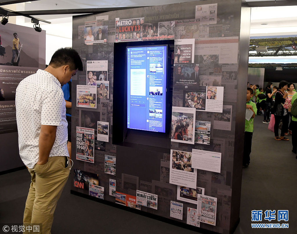 当地时间2018年8月30日,泰国曼谷,暹罗百丽宫举办泰国溶洞救援主题互动展览。6月23日,泰国少年足球队“野猪”队12名少年足球队员和1名教练进入清莱府一处洞穴后因暴雨洪水与外界失联,经多国搜救队伍集体救援,终于在7月10日全部获救。(图片来源:视觉中国)