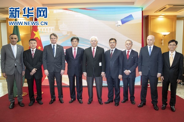8月29日,中国驻巴西大使李金章(左四)参加庆祝中巴地球资源卫星合作30周年活动。新华网发(李明 摄)