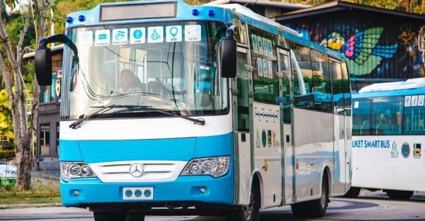 普吉在对城内交通实时数据进行统筹后决定在游客常去的线路中引入有摄像监控、无线网络、残疾人专属座位及定位功能的智能公交车,以减少交通事故并为游客提供便利。新华网发(泰国数字经济与社会部提供)