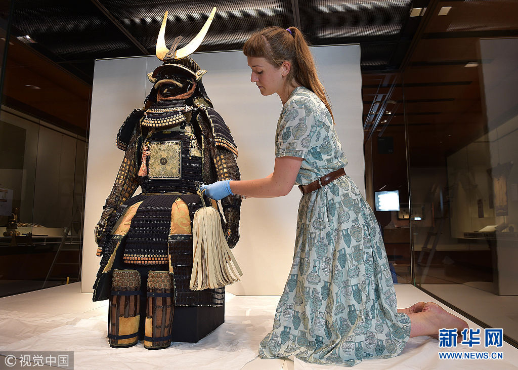 当地时间2018年8月31日,英国伦敦,一套日本江户时期的武士盔甲经过九个月的修复已修复完毕,将于9月底开始展出。(图片来源:视觉中国)