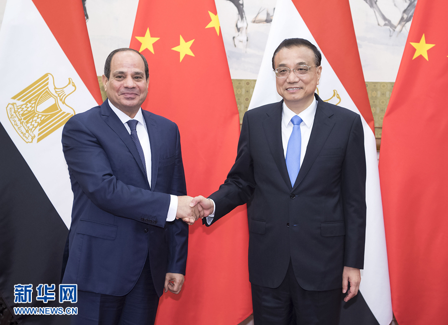 李克强表示,埃及是有影响的地区大国,中埃关系发展快速,两国高层保持密切交往。昨天,习近平主席同总统先生就进一步深化两国全面战略伙伴关系达成广泛共识。中埃优势互补,中方愿推动中国企业赴埃投资,利用苏伊士运河工业园区开展产能、加工贸易等合作,拓展更广阔的市场,更好实现互利双赢,希望埃方为此提供税收等方面的优惠政策。