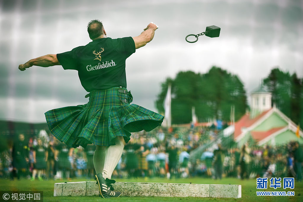苏格兰高地运动会举行 壮汉穿裙掷链球画风有趣