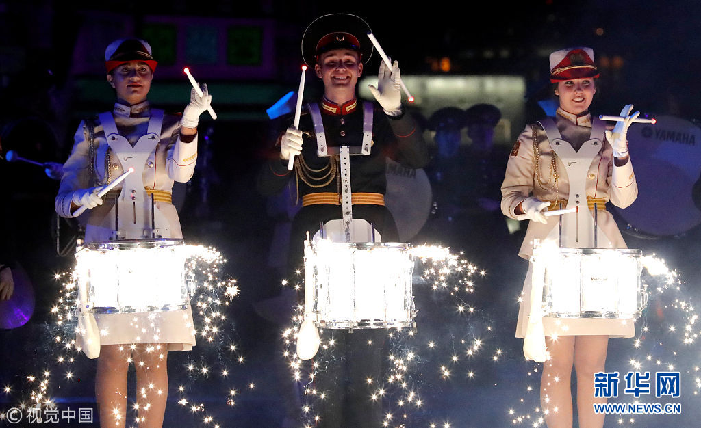 艺术家在俄罗斯国际军事音乐节闭幕式上大展才艺