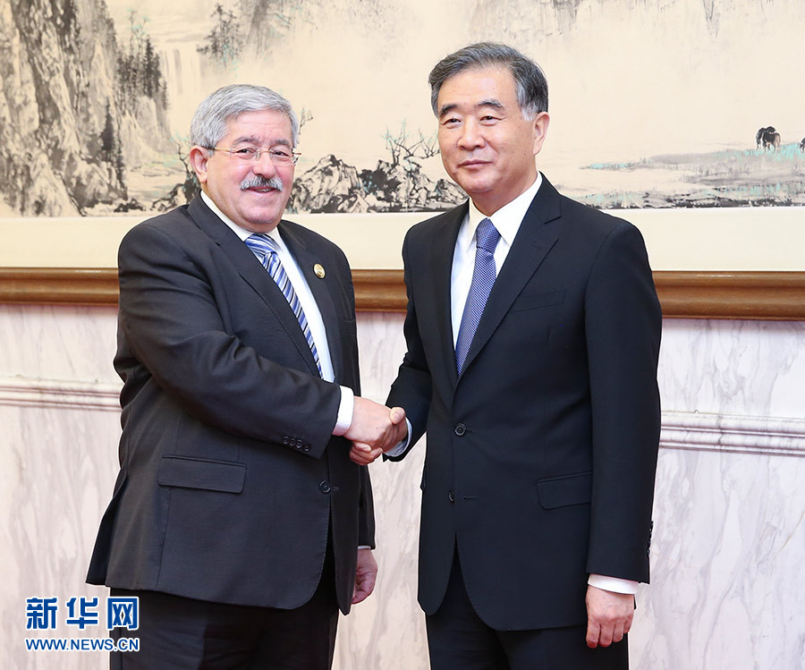 9月5日,全国政协主席汪洋在北京钓鱼台国宾馆会见阿尔及利亚总理乌叶海亚。 新华社记者 姚大伟 摄