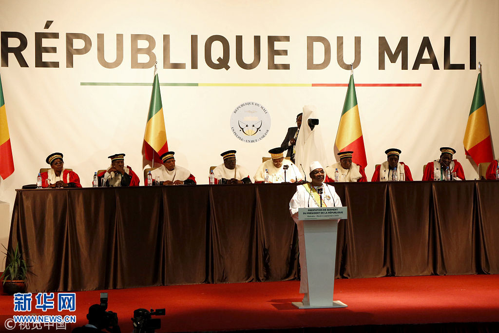 当地时间2018年9月4日,根据马里宪法法院发布的消息,易卜拉欣·凯塔4日在马里首都巴马科宣誓就职。 (图片来源:视觉中国)