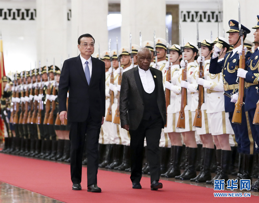 9月6日,国务院总理李克强在北京人民大会堂同莱索托首相塔巴内举行会谈。这是会谈前,李克强在人民大会堂中央大厅为塔巴内举行欢迎仪式。 新华社记者 丁海涛 摄