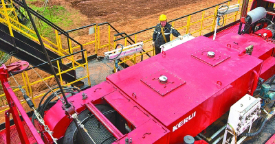 莫斯科以东1200公里的广袤平原上,葱茏的草甸与一排排金黄色抽油机绘出巧夺天工的画卷。这里是俄罗斯一座能源军工小城,记录着中俄两国11年油气合作的历程。日前,记者一行走访了中俄最大合资生产项目,中俄乌德穆尔特石油股份公司(简称UDM)。图为在俄罗斯伊热夫斯克,工人在UDM项目钻井现场作业。新华社发