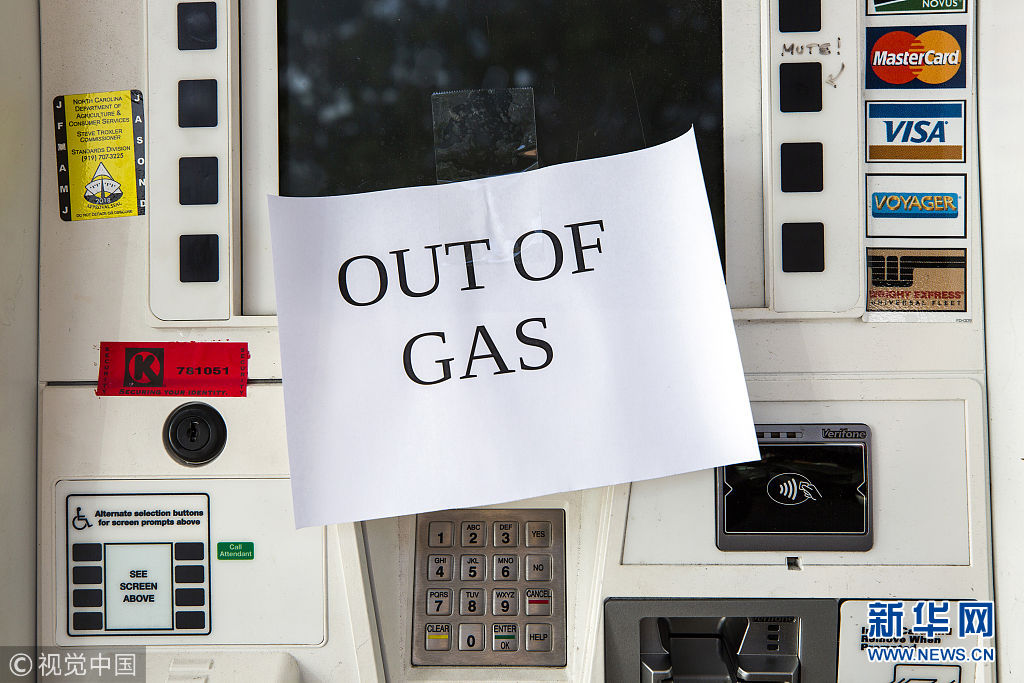 当地时间2018年9月11日,美国北卡罗莱纳,当地将迎飓风,加油站没油。美国有线电视新闻网(CNN)11日报道称,美国东海岸南部周二(11日)将迎来飓风“佛罗伦萨”,目前风速已经达到每小时140英里,强度接近5级。(图片来源:视觉中国)