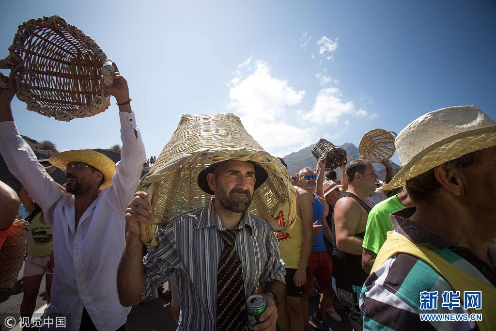 当地时间2018年9月11日,西班牙加那利群岛,约2万人在圣尼克村的咸水湖里尝试用他们的手或篮子捕鱼,这是一种被称为“登巴达”的古老土著捕鱼技术。当地民众于每年9月11日下午举行庆祝活动,纪念这种技术的起源。