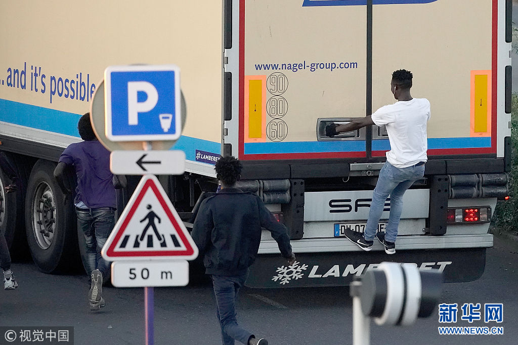 法国出现“扒车客” 企图偷渡到英国