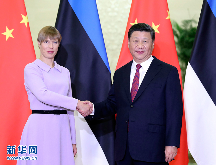 9月18日,国家主席习近平在北京人民大会堂会见来华出席夏季达沃斯论坛的爱沙尼亚总统卡柳莱德。 新华社记者丁林摄