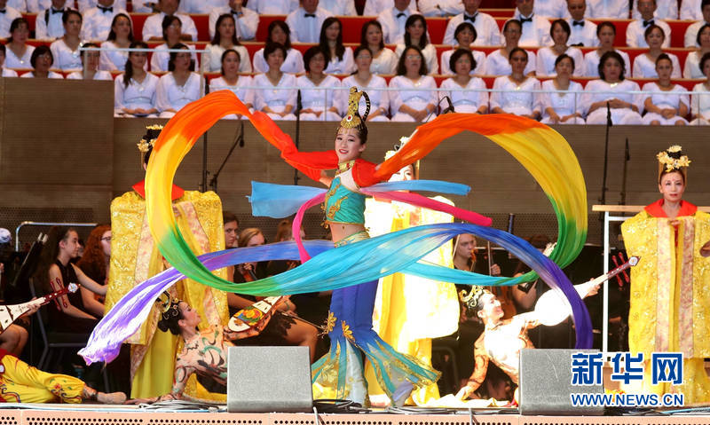 9月16日,当地的皓舞舞蹈团在美国芝加哥“文化中国-友谊地久天长”音乐会现场表演舞蹈《千年之约》。新华社记者 汪平摄