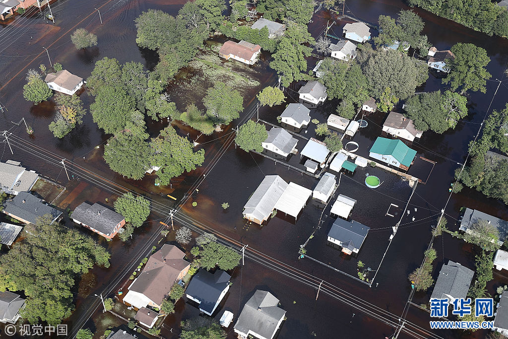 美国飓风“弗洛伦斯”灾后清理工作持续 房屋被洪水浸泡