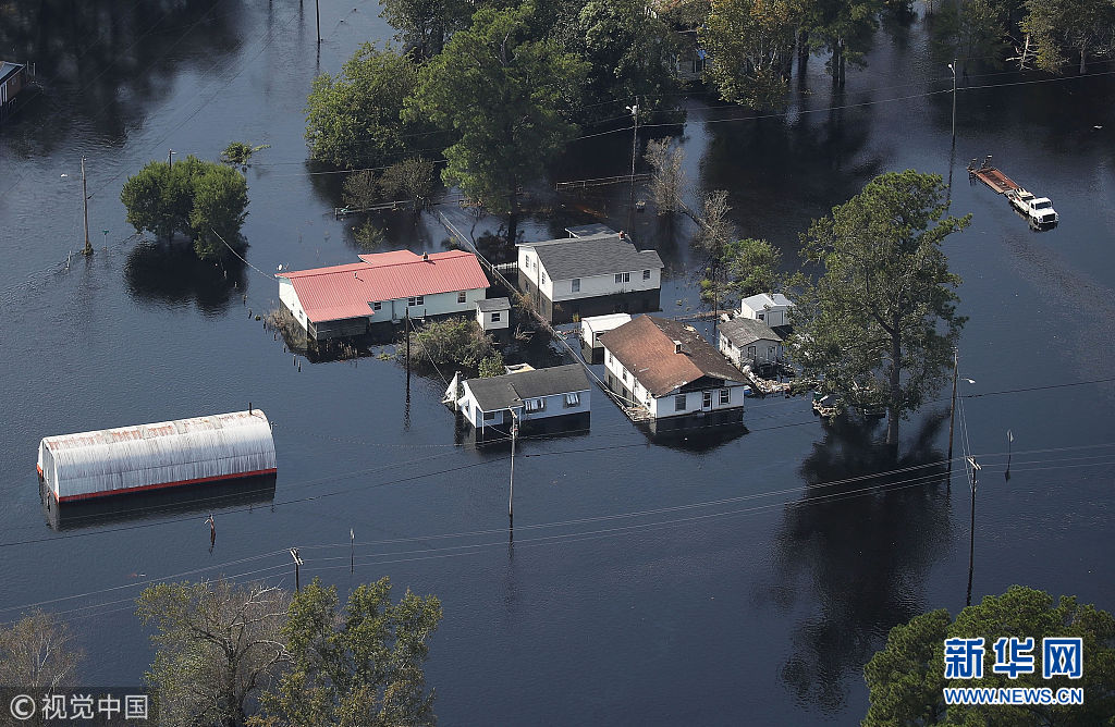 美国飓风“弗洛伦斯”灾后清理工作持续 房屋被洪水浸泡