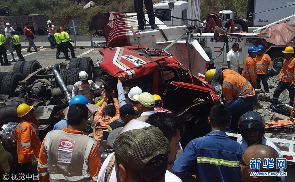 当地时间2018年9月19日,哥伦比亚昆迪纳马卡省Guaduas和萨尔加港之间的公路上,发生两起交通事故,一辆卡车刹车失灵撞上前一起交通事故的救援人员,两起事故共造成8人死亡,14人受伤。(图片来源:视觉中国)