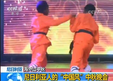 接下来的童星中国武术的节目更是让人眼前一亮,4位10岁左右的尼日利亚儿童一上场就气势不凡,两人对打一招一式都有模有样。