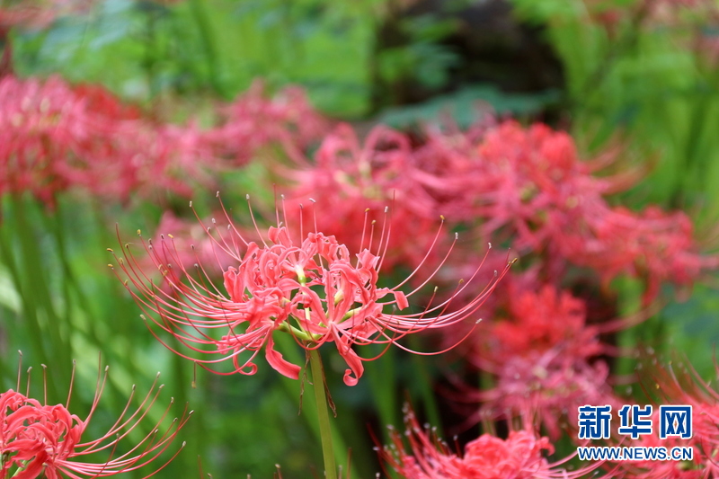 图为9月24日在日本埼玉县巾着田曼珠沙华公园内拍摄的怒放的曼珠沙华。新华网记者 彭纯摄