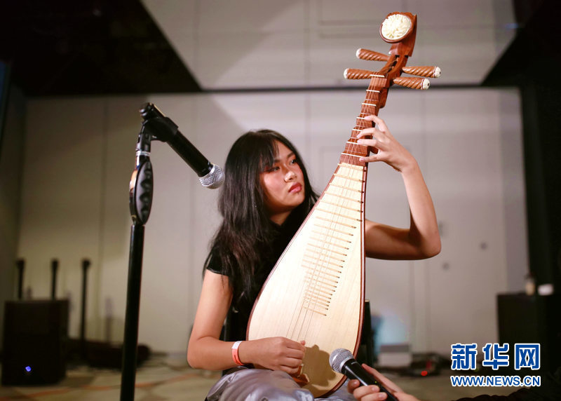 9月22日,在美国芝加哥,中国留学生在中秋晚会上演奏琵琶曲目《彝族舞曲》。新华网记者 汪平摄