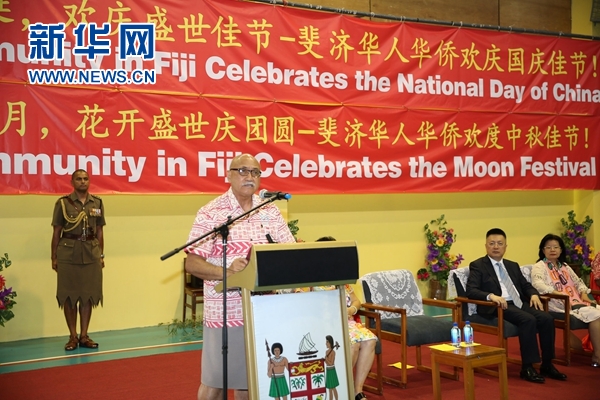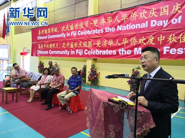 23日,斐济华人协会携手斐济中国文化中心在逸仙学校大礼堂举办盛大活动,庆祝中国中秋佳节及中华人民共和国69华诞。斐济总统孔罗特、中国驻斐济大使钱波、斐济华人协会会长陈婉娴,中资企业代表、华侨华人代表约1000人应邀出席。虽然斐济距祖国路途遥远,但在这些华侨华人、海外游子的心中,始终装着对祖(籍)国的拳拳心与悠悠情。