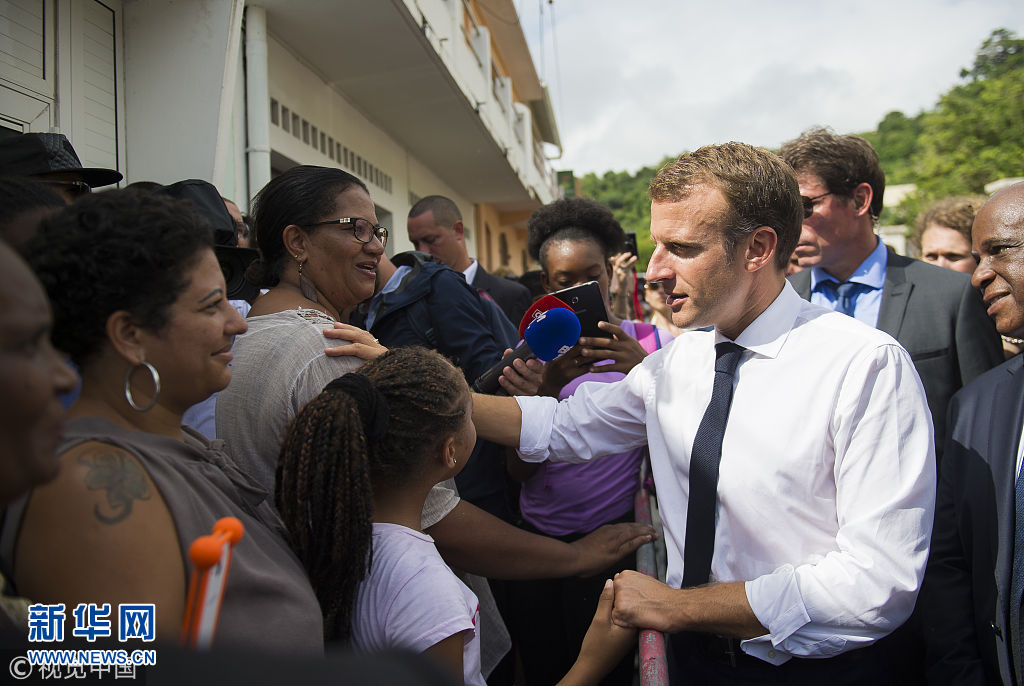 当地时间2018年9月27日,法属安的列斯群岛,法国总统马克龙访问一年前受到飓风