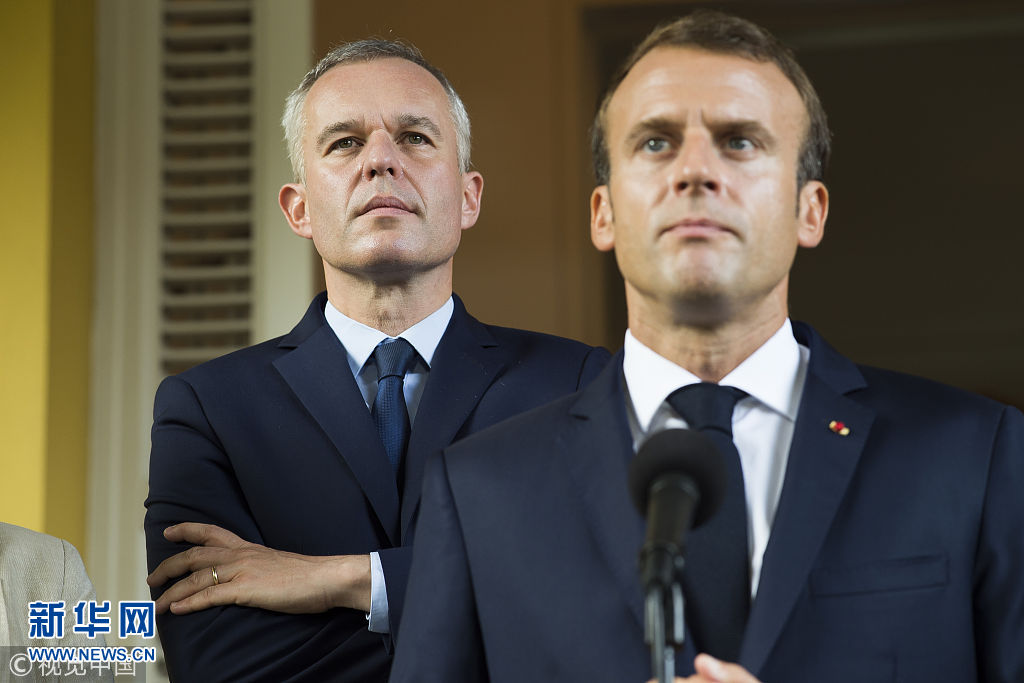 当地时间2018年9月27日,法国总统马克龙访问一年前受到飓风艾尔玛重创的法属圣马丁岛和圣巴泰勒米岛灾区,并视察当地的重建工地。(图片来源:视觉中国)
