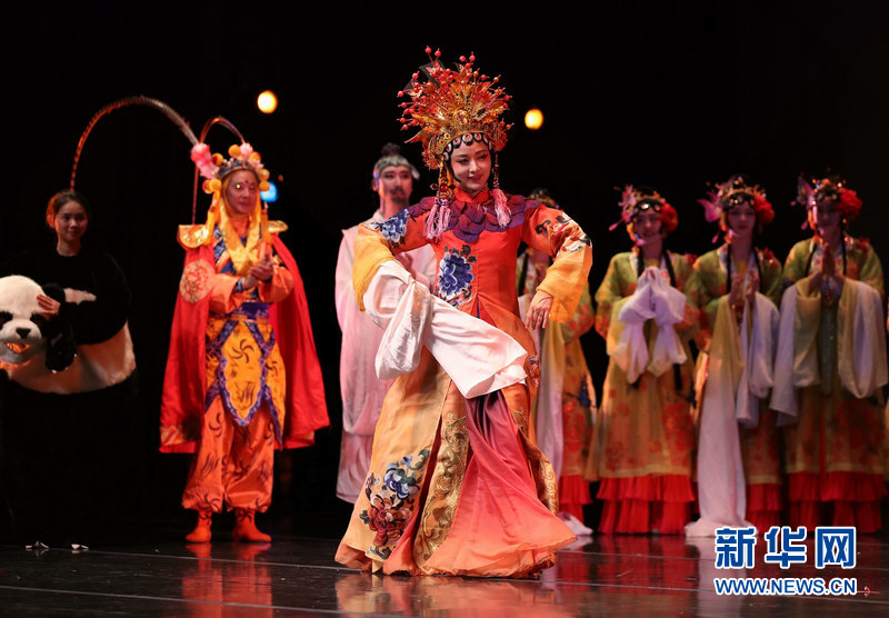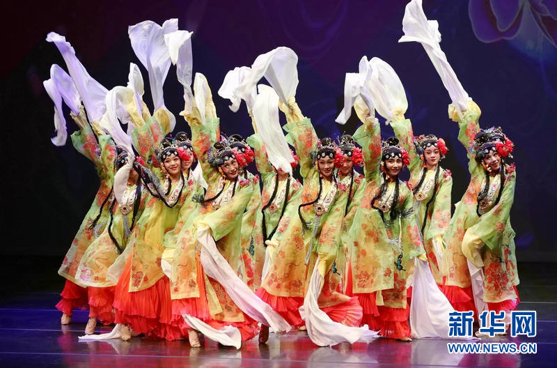 9月25日,在美国芝加哥,来自四川省歌舞剧院的演员表演大型诗乐舞《大国芬芳》。新华社记者 汪平摄