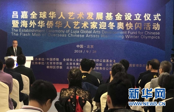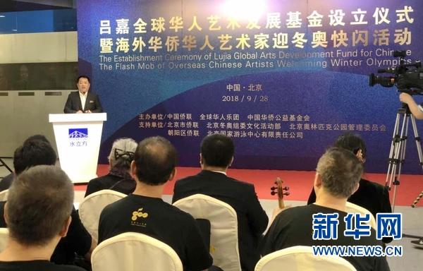 新华网北京9月29日电(王一诺)吕嘉全球华人艺术发展基金设立仪式暨海外华侨华人艺术家迎冬奥快闪活动,28日在国家游泳中心(水立方)举行。