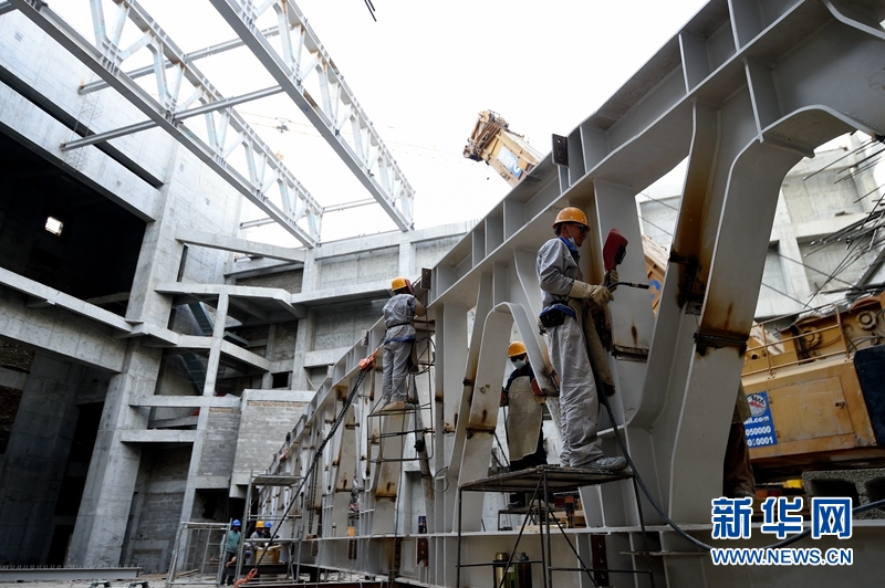 9月21日,工人们在援建项目现场作业。新华社记者 代贺摄