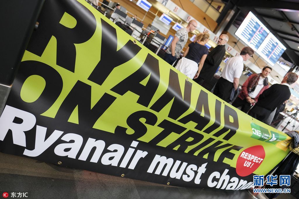 当地时间2018年9月28日,比利时沙勒罗瓦,因劳动合同和工作条件问题,欧洲最大廉价航空公司瑞安航空公司在比利时、德国、意大利、荷兰、葡萄牙和西班牙的员工举行罢工,造成当日约250个航班被取消,3万名乘客受到影响。(图片来源:东方IC)