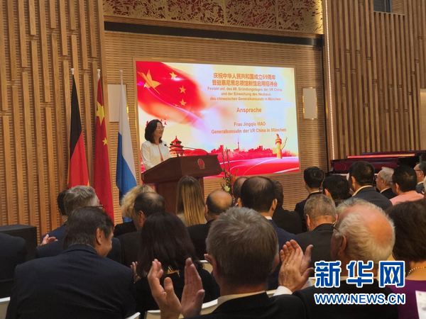 新华网慕尼黑9月29日电(记者 朱晟)中国驻慕尼黑总领馆28日晚举行招待会,隆重庆祝中华人民共和国成立69周年暨新馆正式启用。当地政要、各国驻慕尼黑领团及华侨华人、留学生和中资机构代表等300余人出席招待会。