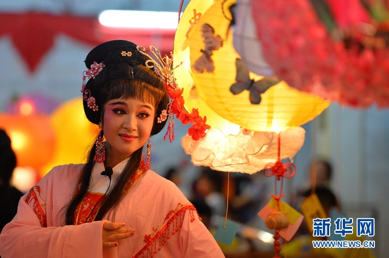 9月24日晚,文莱华人社团在斯里巴加湾市中心举办庆中秋灯会和传统戏曲表演,吸引民众驻足观赏。图为闽剧团演员在灯会上表演传统戏曲。杰弗里·黄摄
