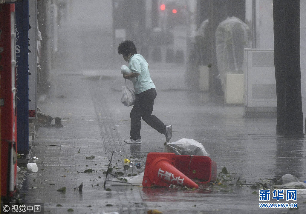 当地时间2018年9月29日,日本冲绳,第24号台风“潭美”逼近冲绳,狂风暴雨肆虐。(图片来源:视觉中国)