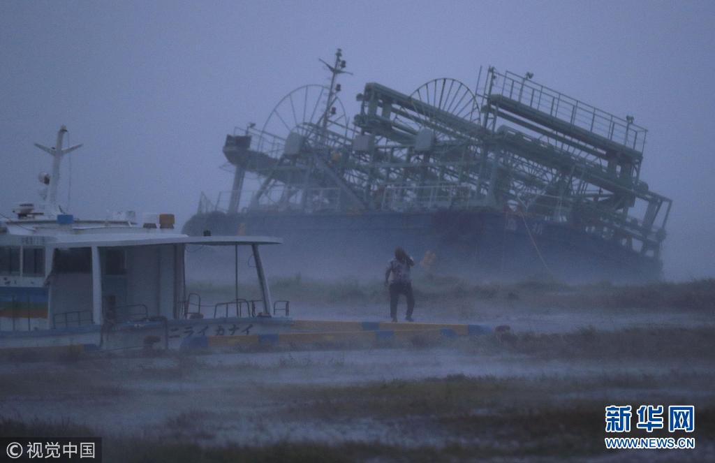 当地时间2018年9月29日,日本冲绳,第24号台风“潭美”逼近冲绳,狂风暴雨肆虐。(图片来源:视觉中国)