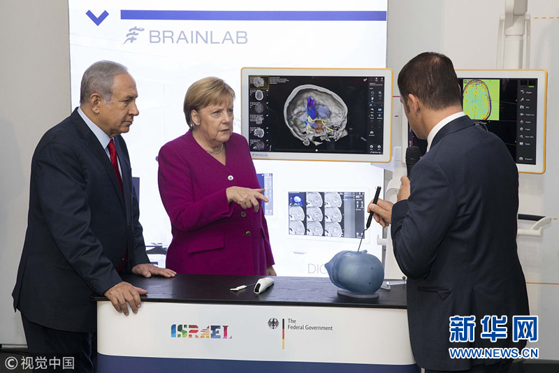 当地时间2018年10月4日,耶路撒冷,德国总理默克尔在以色列总理内塔尼亚胡陪同下参观以色列博物馆。(图片来源:视觉中国)