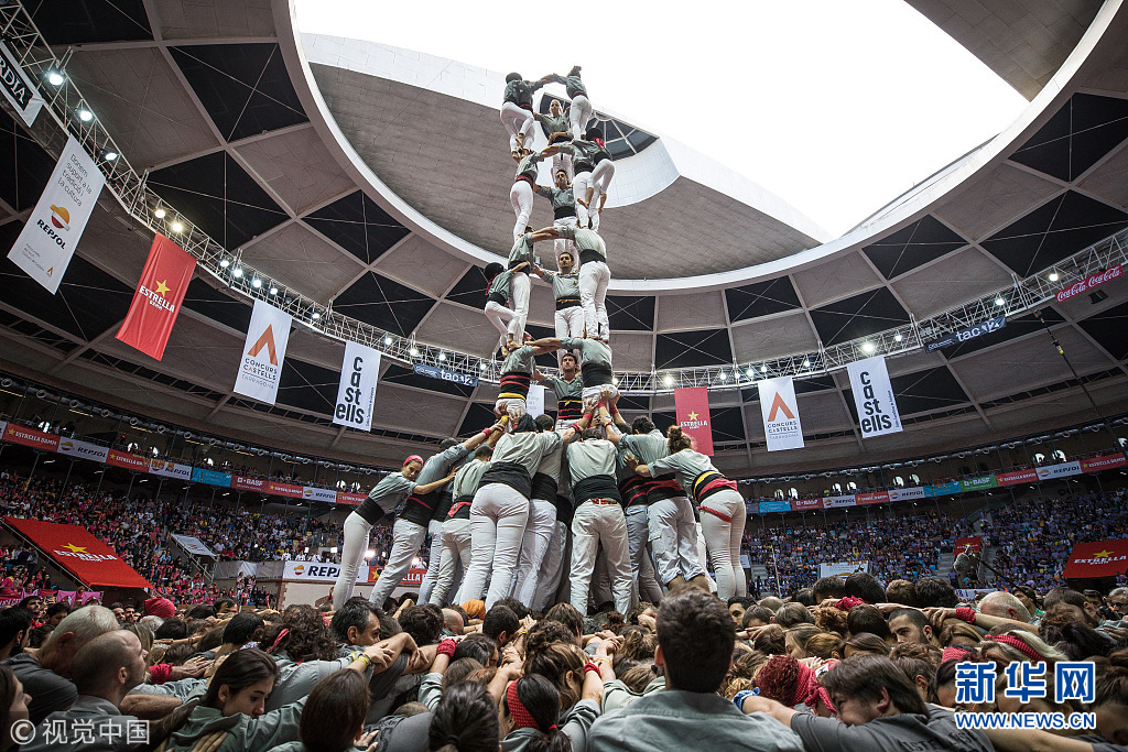 西班牙举行搭人塔比赛 花式“叠罗汉”蔚为壮观