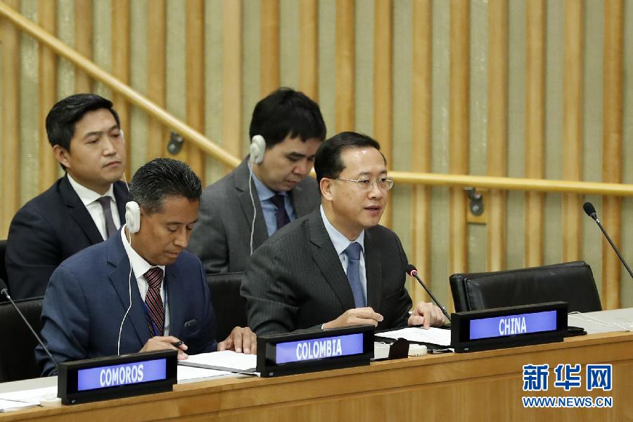 10月9日,在位于纽约的联合国总部,中国常驻联合国代表马朝旭(前右)在第73届联大二委一般性辩论上发言。 新华社记者李木子摄