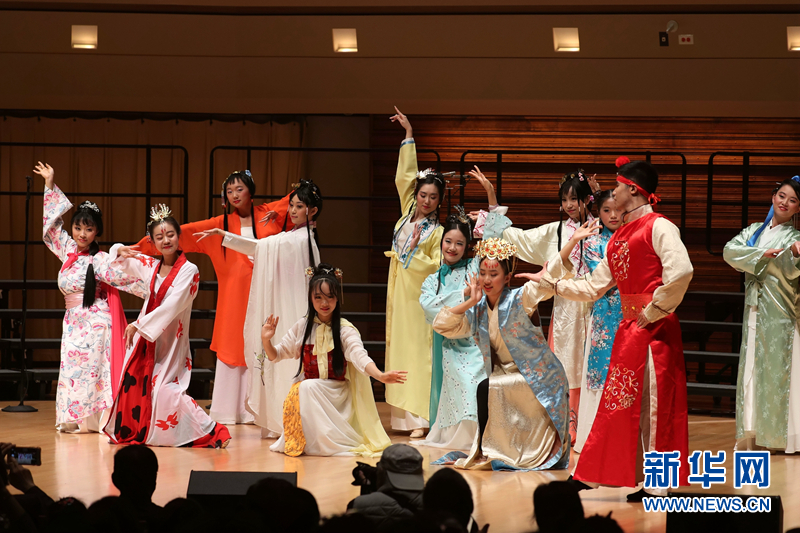 10月7日,在美国芝加哥,华星艺术团的舞蹈演员在音乐会现场表演舞蹈《红楼梦随想》。新华社记者 汪平摄