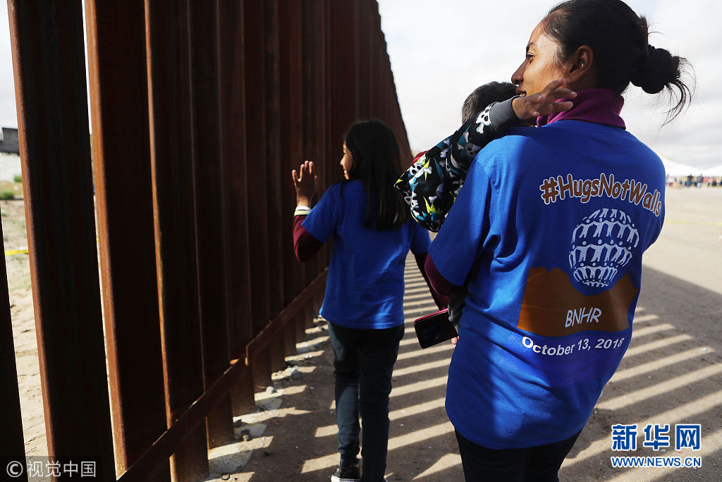 当地时间2018年10月13日,美国新墨西哥州,经过美国政府的批准,美墨边境巡逻队当日短暂打开边界墙,允许200多个居住在美国的墨西哥移民家庭与他们在墨西哥的亲属团聚三分钟。(图片来源:视觉中国)