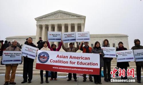 资料图:美国亚裔团体在最高法门口举行集会示威。中新社记者 张蔚然 摄