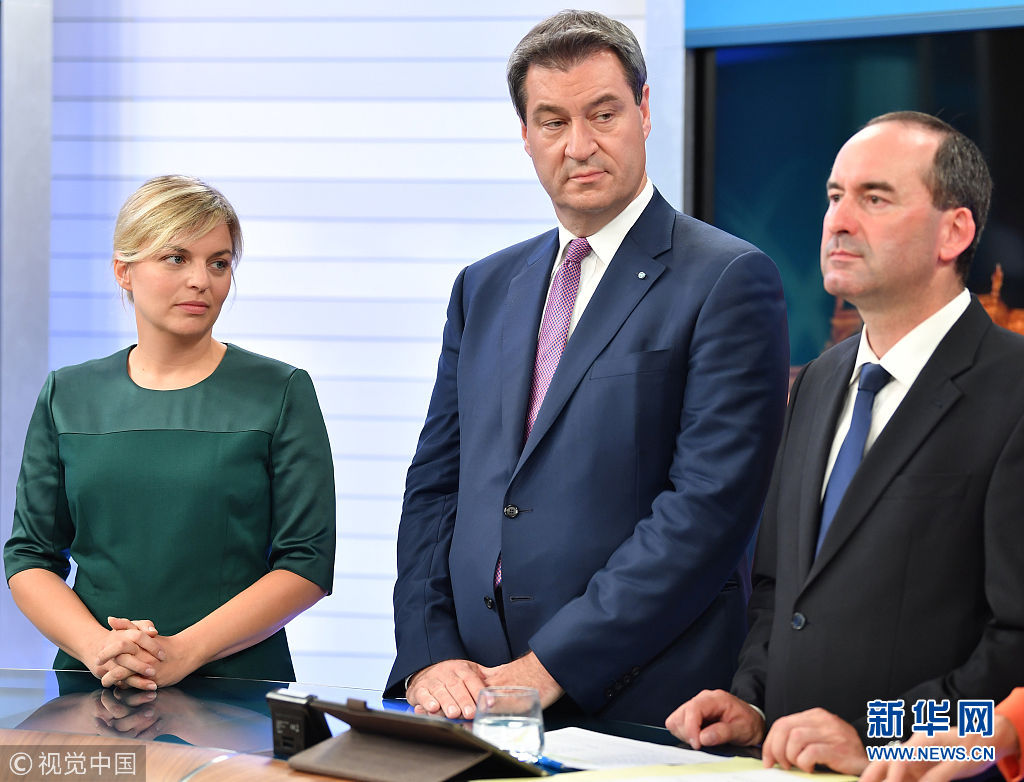 当地时间2018年10月14日,德国慕尼黑,基督教社会联盟党听取第一次出口民调结果。根据14日的出口民调显示,默克尔所在基民盟的执政同盟基社盟在巴伐利亚州议会选举中,遭遇60年来最糟糕结果,得票率为35.5%,这是该党自1962年以来,第二次在州议会选举中失去绝对多数席位。极右翼德国另类选择党则首次进入州议会。这一结果增加了德国政府内部分歧扩大的风险。(图片来源:视觉中国)