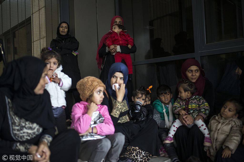 当地时间2018年10月15日,希腊雅典,难民们聚集在希腊移民政策部门前示威,抗议马拉卡萨难民营的生活条件,并要求搬迁到其他难民营生活。 (图片来源:视觉中国)