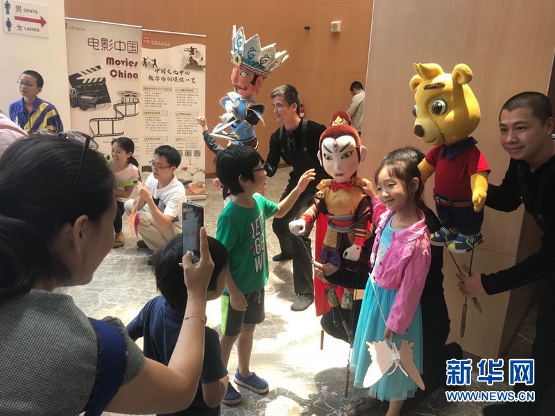 图为小观众与木偶合影。新华社记者王丽丽摄