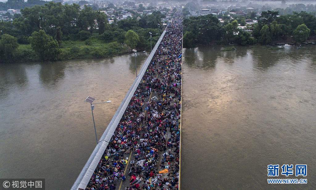中美洲移民等待进入墨西哥 成千上万移民“挤爆”边境大桥