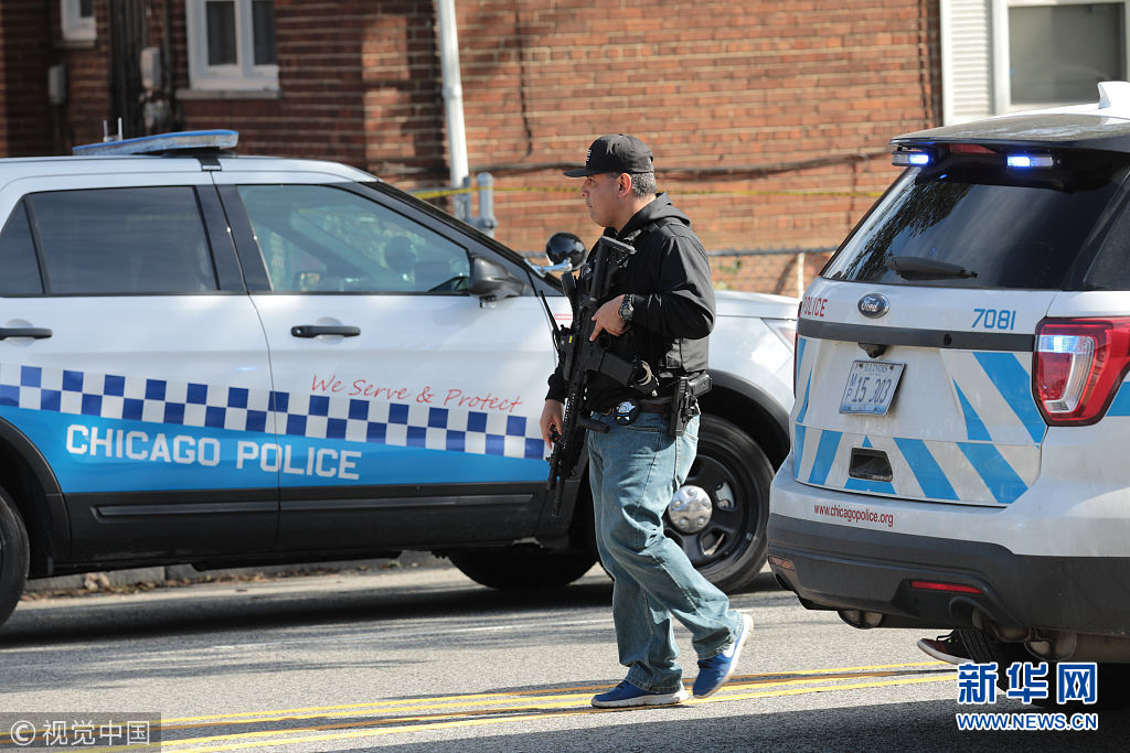 当地时间2018年10月22日,美国芝加哥,当地举行一场葬礼后发生袭击,共有6人遭到枪击,目前当地警方已在对该案进行调查。(图片来源:视觉中国)