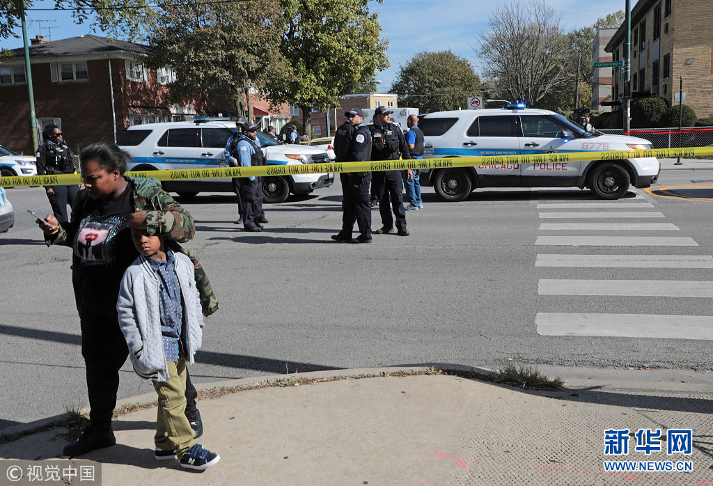 当地时间2018年10月22日,美国芝加哥,当地举行一场葬礼后发生袭击,共有6人遭到枪击,目前当地警方已在对该案进行调查。(图片来源:视觉中国)