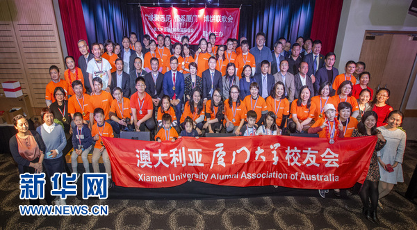 联欢活动上澳大利亚厦门大学校友会颁发“厦商‘芙蓉杯’徒步赛奖牌。(图片由主办方提供)