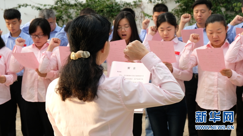 2018年10月22日,中国援摩洛哥医疗队18位新队员在位于拉巴特的中国驻摩洛哥大使馆举行升旗宣誓仪式。这些新队员将在摩洛哥承担两年的援外医疗任务。中国援摩医疗队由上海市派出,下辖8个医疗分队约80名队员,分别在穆罕默迪亚、拉希迪耶、塔扎、舍夫沙万、阿加迪尔、梅克内斯、本格里、塞达特等地区公立医院开展医疗业务,大多数是条件艰苦的偏远山区和荒漠地带。 新华社记者陈斌杰摄