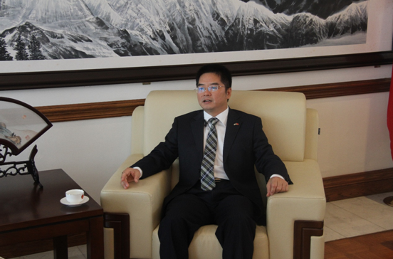 梁才德总领事接受“中国媒体东盟行”记者团采访。 图/环球网 孙文钰
